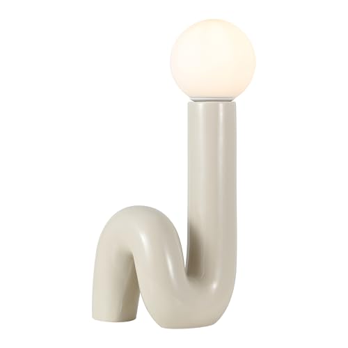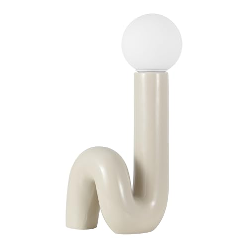 A transitional light gray ceramic base is accented by a frosted white glass globe