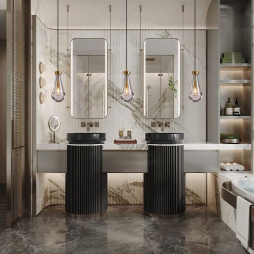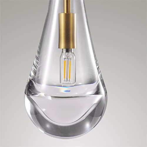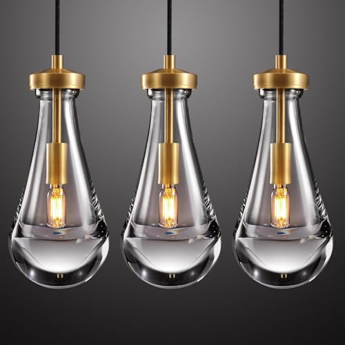 ?Bigger Size?The kitchen island pendant light’s all-brass base has a diameter of 5"; the raindrop glass measures 5"x11"; Raindrop weighs 8.2 LB. the bigger size of the pendant lighting for kitchen island allows you to get a better light effect.