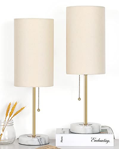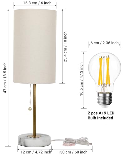 3-Way Dimmable: The dimmable bedside table lamps offer 3 level brightness options (Low, Medium, and High), you can easily adjust the brightness by the pull chain switch. Included 2 A19-3000K LED bulbs, these small gold table lamps with pull chain can meet a variety of usage scenarios