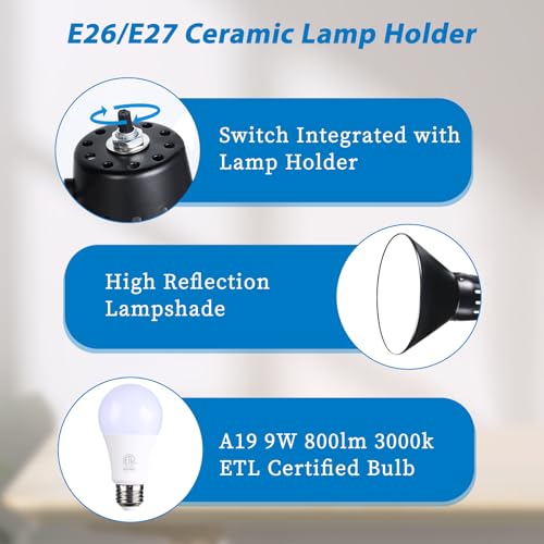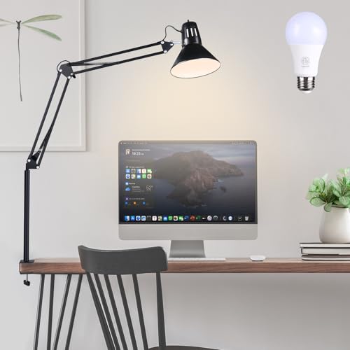 ?A19 Bulb & 60-inch Power Cable?: The clamp on desk lamp is paired with a high quality A19 bulb and 60 inch extra long power cord, the bulb is ETL certified and safe to use.This adjustable desk lamp is compatible with E26/E27 base bulb,it is very easy to replace the bulb. Besides, the power cord is UL certified,safe and reliable; the extra long power cord allows you to cope with multiple usage scenarios without worrying about the length limit of the power cord.