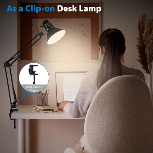 ?Metal Tall Desk Lamp?: The clip on lamp is made of high-quality metal with extremely high gloss. The lamp pole is thickened to ensure that the clip lamp is more stable, and the inside of the lampshade has been carefully polished, which effectively enhances the brightness of the bulb and makes the light softer and brighter. The black mechanical shape design is beautiful and classic. This can not only serve as a practical working lamp, but also decorate your office and room.
