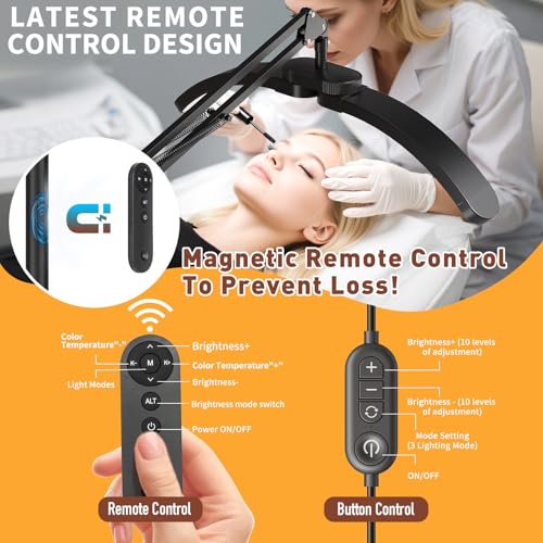 2 CONTROL METHODS & MAGNETIC REMOTE CONTROL: KALVISH esthetician light provides two control options: button switch or remote control (batteries not included). The magnetic remote attaches securely to the lamp arm for easy access and loss prevention, offering convenient operation for daily use