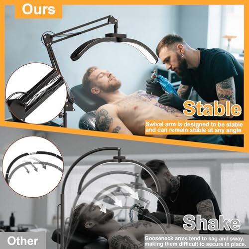 UPGRADED LAMP ARM & ADJUSTABLE HEIGHT: This LED tattoo light features a new rotating arm design, replacing the traditional style, more stable and robust. The arm adjusts from 47" to 71.65" by loosening and tightening the rose gold adjustment ring, allowing comfortable height, whether sitting or standing