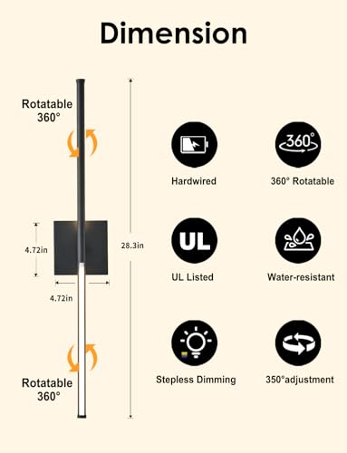 350° Rotatable Design for Targeted Lighting: Direct light exactly where you need it! The adjustable head of these modern wall sconces rotates 350°, making them perfect for accenting artwork, illuminating mirrors, or lighting up dark corners—all with a simple twist