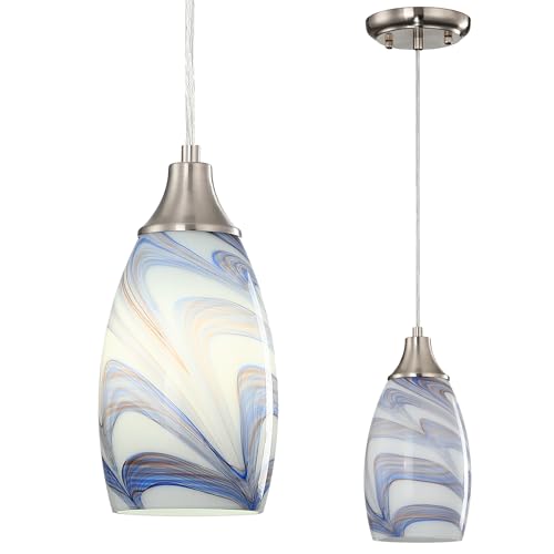 Unique Art Glass Patterns:This mini glass pendant light fixture is Hand-blown unique abstract blue pattern Art glass, due to its hand-made nature, each piece of blown glass will vary in color and pattern.