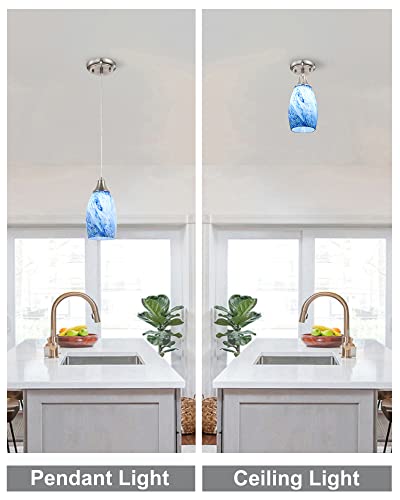 Unique Art Glass Patterns:This mini glass pendant light fixture is Hand-blown unique abstract blue pattern Art glass, due to its hand-made nature, each piece of blown glass will vary in color and pattern.