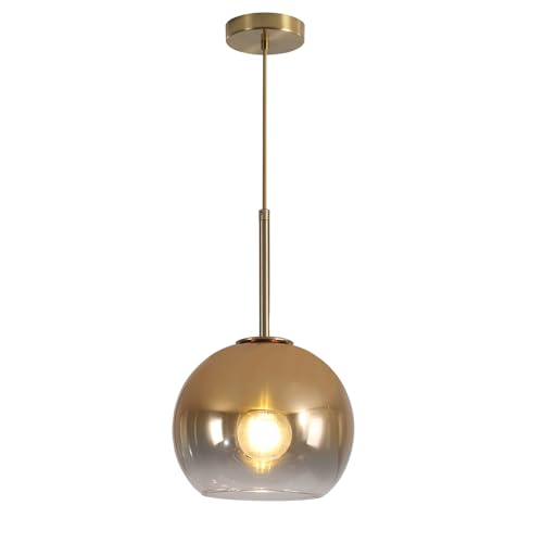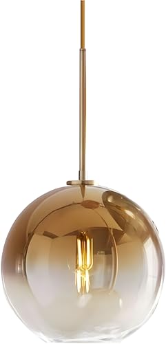 Adjustable Pendant Light: The industrial vintage antique brass pendant lights kitchen island with gold glass lampshade equipped with a 59.1 inches long hanging wire, which can be easily shortened to your lighting needs or can be formulated according to your requirements. The 1-light glass ball pendant lighting for kitchen island is compatible with sloped ceilings, slanted ceilings to allow various hanging positions