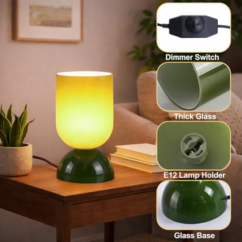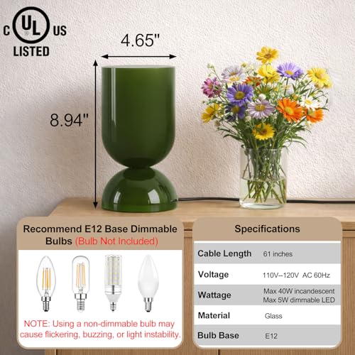 ?Cylindrical & Minimalist Design?This glass table lamp features a sleek cylindrical design with a glossy green shade and dome-shaped base—perfect for adding a modern touch to any room. The table lamp is 8.9" high 4.6" wide, a size versatile for bedroom, living room, guest room, study room, home office,etc