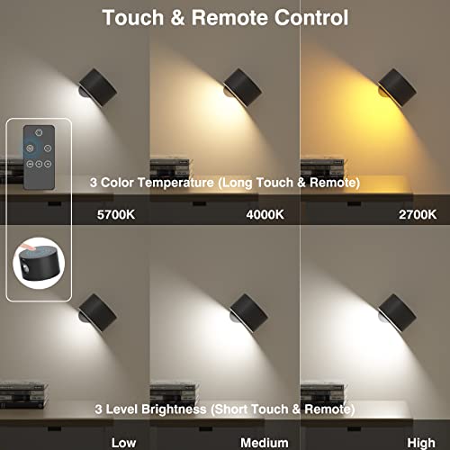 Two Control Modes: 1. Battery operated wall sconce with remote control, you can press the remote contorl to adjust the ON/OFF, 3 levels brightness, 3 color temperature, timing switch (30mins/60mins/120mins) of the bedside lights. 2. Touch switch, short touch to adjust the power and brightness“ON-Low-Medium-High-OFF”?long touch to sconces wall lighting for adjusting the temperature color“White- Natural White- Warm"