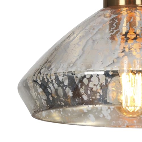 [Textured Mercury Glass Shade] The unique mercury glass shade is crafted with intricate detailing, creating a stunning "exploding" effect. When illuminated, it casts a beautiful, warm glow that showcases the intricate detailing and dynamic, speckled reflections, creating a striking visual impact that elevates any space with its exceptional craftsmanship and captivating lighting effect.