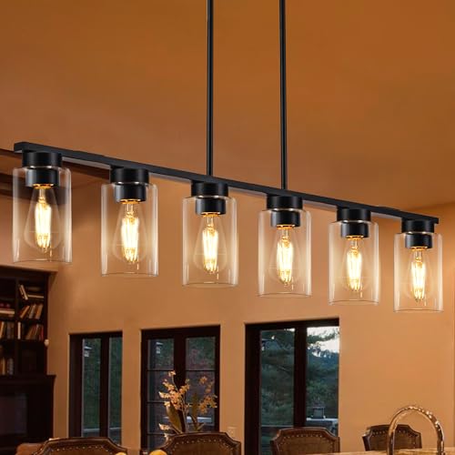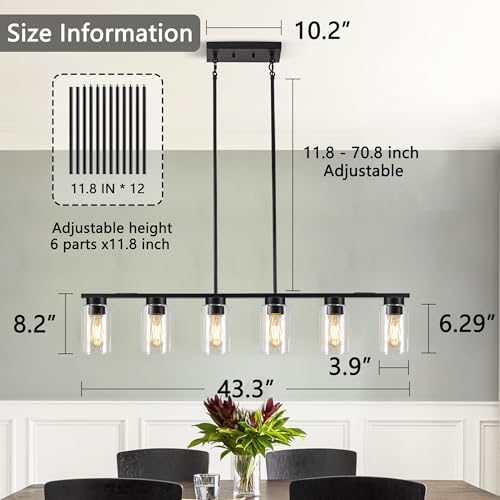 [Easy to Install] This black linear dining room light fixture is easy to install, you just need to take out the light body, install the glass shade, connect the wires, and you can enjoy the warm and cozy lighting effect brought by the dining chandelier. For installation, you can refer to the online video we posted on Amazon. 6 Light island light fixture witness every warm moment