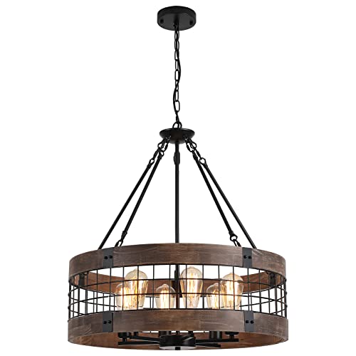 [ E26 Bulb Source & Dimmable ] The modern farmhouse chandelier requires 6 E26 base bulbs (maximum 60W each, not included), compatible with incandescent, halogen, CFL, and LED bulbs; additionally, this wooden chandelier can be paired with dimmable bulbs with dimmer (not included), allowing to easily adjust the brightness and color temperature to suit your mood