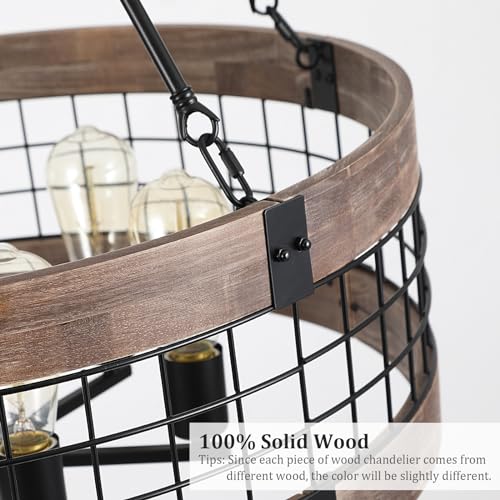 [ Modern and Farmhouse Style ] The body of the farmhouse chandelier is made of natural wood, preserving its original texture, while the lamp arms are designed with excellent black metal; the contrast between wood and metal showcases perfect blend of rustic charm and modern design; whether it is farmhouse, rustic, vintage, industrial, or vintage, retro, modern, casual home style, it can easily add unique style and personality to home, making every corner full of warmth and natural charm