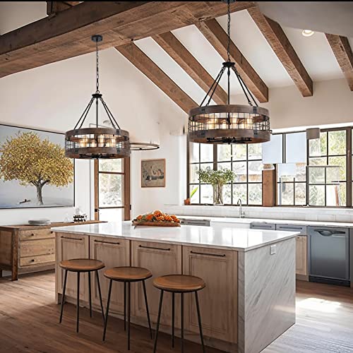 [ Adjustable Chain Length ] This drum farmhouse chandelier features a 47.24 inch adjustable chain with detachable fasteners, which can be adjusted to a minimum of 21 inches and a maximum of 68.24 inches, allowing to freely adjust the hanging height based on different ceiling heights; additionally, the round rustic chandelier is suitable for flat ceiling, sloped ceiling, and arched ceiling, meeting a variety of installation needs