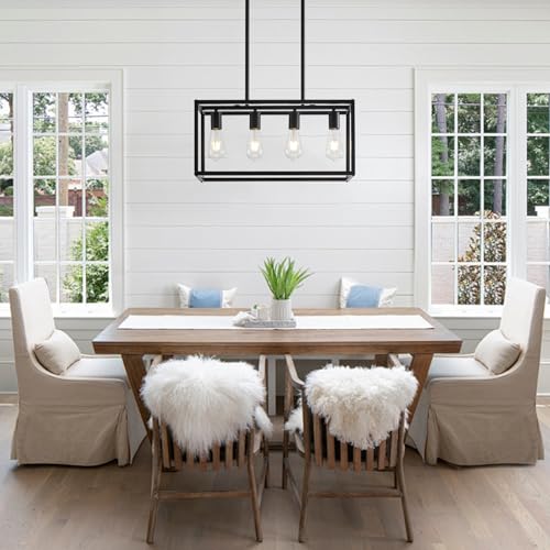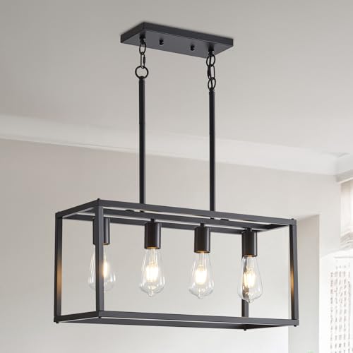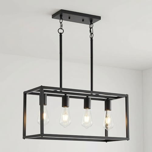 ?RECTANGULAR KITCHEN LIGHT FIXTURES ?The farmhouse chandelier features a high quality metal rectangular frame with matte black finish to show a rustic and modern style. With open cage design, the ceiling light fixture is simple but stylish. Suits a wide range of interior styles and decors ranging from modern and country style. Perfect as a hanging lights for kitchen island, dining room, living room.