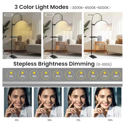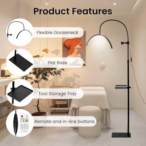With Phone Holder Stand and Adjustable Storage Tray: This eyelash tech lamp comes with an adjustable cell phone stand that allows you to do hands-free video recording and live streaming to record beautiful moments and share them on social media. Adjustable storage tray slides smoothly along the pole, perfect for storing beauty tools, cell phones, remotes, nail polish. Keep essentials organized for work or beauty sessions.
