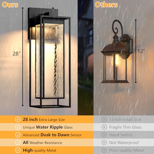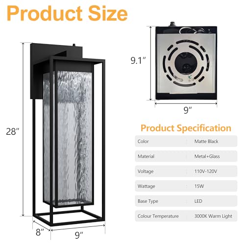 Quick Installation & Wide Application: The outdoor sconce light is 28 inches high, 9 inches long, and 8 inches wide. No need to assemble it yourself, the front porch light is already assembled when you receive it. This modern outdoor wall light can apply on the porch, patio, garage, courtyard, garden, street and hallway.