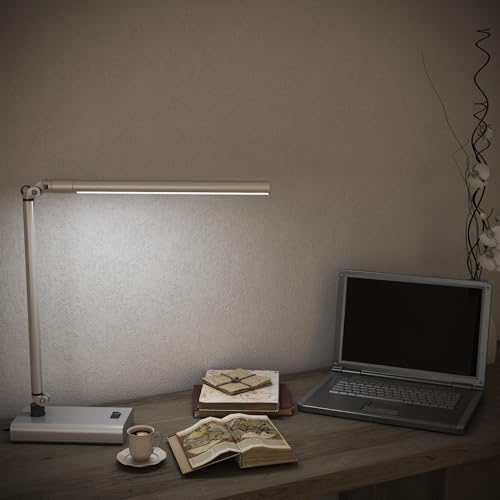 CONTEMPORARY LED DESK LAMP - Illuminate your workspace with this sleek, modern LED bedroom lamp. Use this desk decor in versatile ways around the home or office, including in crafting areas and dorm rooms and on sewing desks and work benches.