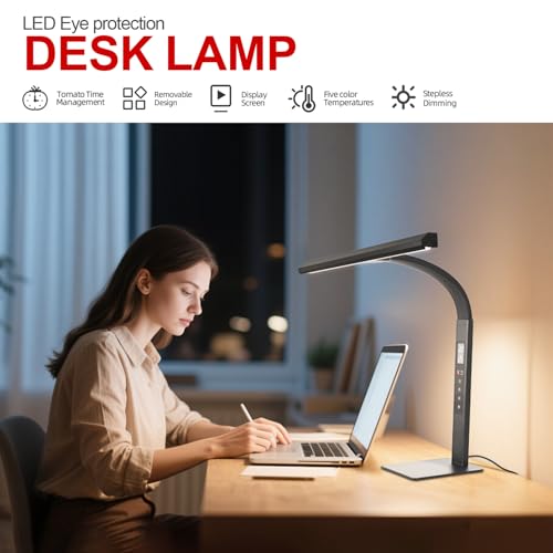 Digital time display: Smooth LED desk lamp with digital clock display, adjustable display light, saving you desktop space.