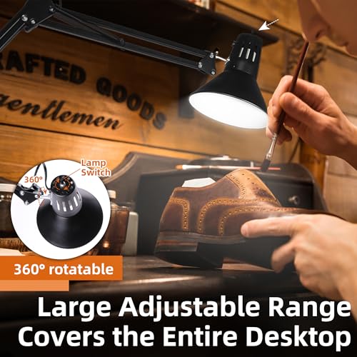 ?A19 Bulb & 63-inch Power Cable? The clamp light for desk is paired with a high quality A19 bulb and 63 inch extra long power cord, This will save you the trouble of buying a light fixture and a light bulb?the extra long power cord allows you to cope with multiple usage scenarios without worrying about the length limit of the power cord.
