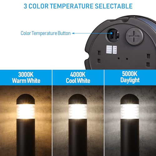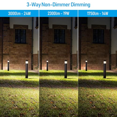 POWER MEETS EFFICIENCY: Our LED bollard light offers adjustable power outputs of 24W/19W/14W, 24W replacing traditional 100W incandescent bulbs while radiating a brilliant 1800lm brightness. With tailored power options, embrace the freedom to effortlessly transform any space, from cozy corners to expansive areas