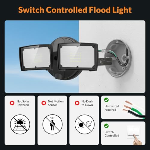 Switching Control & Wall Mount Installation: Lepower outdoor flood lights can be turned on/off by wall switch. Also exterior flood lights can be easily installed for wall mounting by following a few simple wiring steps; ETL certificated, it brings extra safety to your house?Installing it on the wall is advised for better lighting angle adjustment?