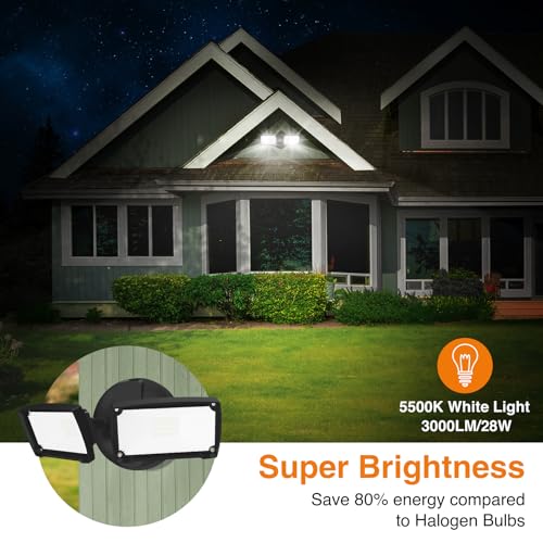 28 W Brightness & Energy Saving: Powered by LED lamp beads as the flood light source, enables LED flood light to produce up to 3000 LM at low-power of 28 W; With professional optical designed filter lens, the flood lights outdoor provides better illumination(soft light, anti-glare) than normal chips; Save more than 80% electricity bill compared with traditional low efficiency lights 140 W (No motion sensor, no dusk to dawn)