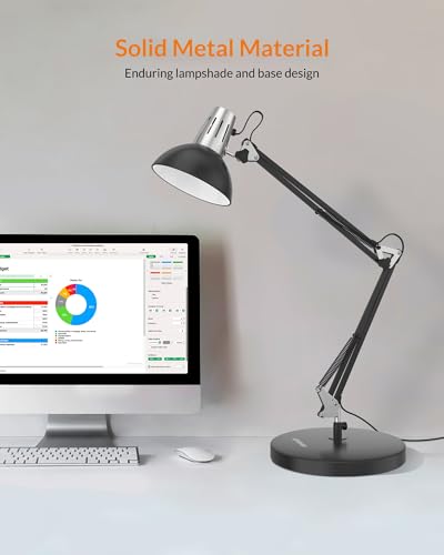 Adjustable Lamp Arm: The desk lamp is flexible and lamp head is adjustable. It can be focused on any area you want to. The compact size is also space-saving in the desk. Wonderful lighting accessory for office