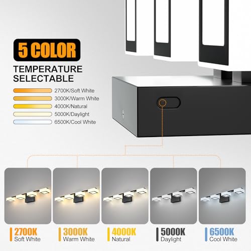 ?5CCT & Wide Application?- Lightania bathroom light fixtures offer 5 color temperature options - 2700K/3000K/4000K/5000K/6500K. Simply slide the toggle switch on the side, and freely choose soft white/warm white/cool white/Daylight temperature. Modern and simple style design, suitable for your bathroom, mirror cabinets, powder room, bedroom and living room etc.