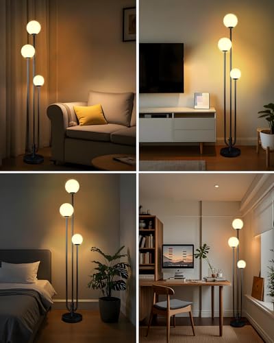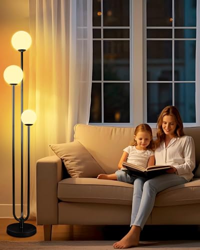 Unique & Exquisite Modern Design ? This 63-inch black floor lamp boasts a mid-century inspired silhouette with three spherical lights artfully arranged on a U-shaped triple metal frame. The elegant minimalist structure blends seamlessly with contemporary, vintage, or industrial decor, adding a touch of sophistication to living rooms, bedrooms, or offices.