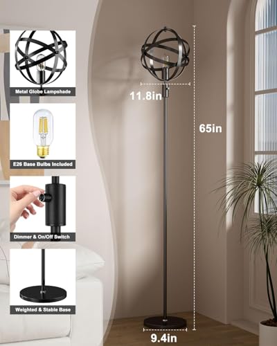 Dimmable LED Bulb Included: This 65-inch dimmable floor lamp is compatible with a variety of E26 dimmable LED, CFL, incandescent and halogen bulbs (60W max, bulb included). Perfect for living room, bedroom, office, sofa corner and so on.