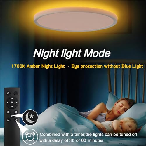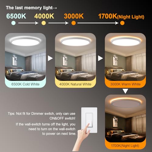 ?Diverse Lighting Palette?This flush mount ceiling light offers an array of options - choose from 3 color temperatures: 3000K (warm white), 4000K (natural white), or 6500K (cool white). What's more? Effortlessly transition through the spectrum from 3000K to 6500K, steplessly adjusting to your preferences via remote control