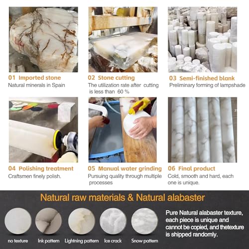 ? Natural Alabaster ? Alabaster light fixture lampshade is hand-carved from translucent natural marble, natural snowflake marble after careful selection and polishing, durable, bright lighting effect without glare, showing a unique and beautiful pattern for each lampshade (Note: the natural marble texture of the appearance of the lampshade cannot be guaranteed to be the same as the display picture).