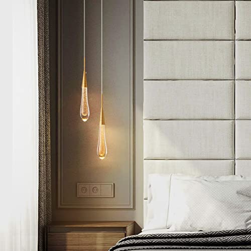 ?Inspiration Design?The crystal teardrop bubbles of the pendant light imitate the frozen champagne bubbles, and the light can be well dispersed, thus creating a modern glamorous glow. The lamp color is gold in brushed brass to complement your various home decor styles. adding beauty and warmth to your home.