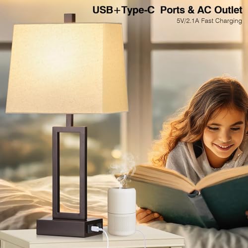 ?USB A+C Charge Ports and AC Outlet?This bedroom lamps set of 2 are equipped with USB & TYPE-C Charging Ports and 120V AC power outlet, allowing you quickly to charge 3 devices at the same time, such as smart phones, tablet, kindle, laptop, humidifier, and other electric devices. Whether the lamps is turned on or off, you can conveniently charge various electronic devices without searching for an extra socket and charge your phone at night with lamp for living room lamps