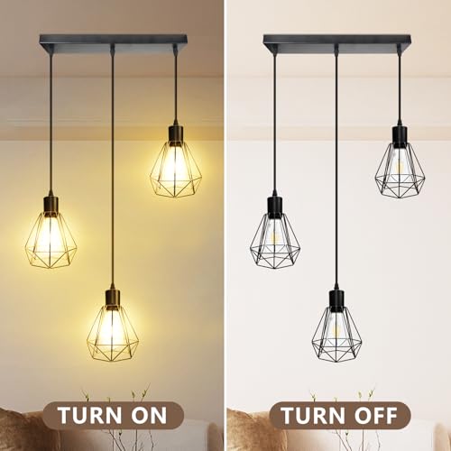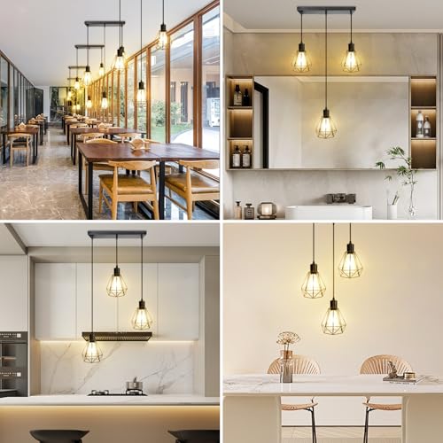 ?Freely Adjust the Cord Height?These industrial hanging pendant light with 3 adjustable cord, to fit your ceiling height needs by unscrewing the 3 tightening caps. Combining with industrial style and vintage design, this kitchen pendant light fixtures can easily blend with almost any decor and can captivate your guests' eyes and an inviting ambiance as well, this farmhouse kitchen pendant light fixtures also a great choice for decorating the corners of your home.