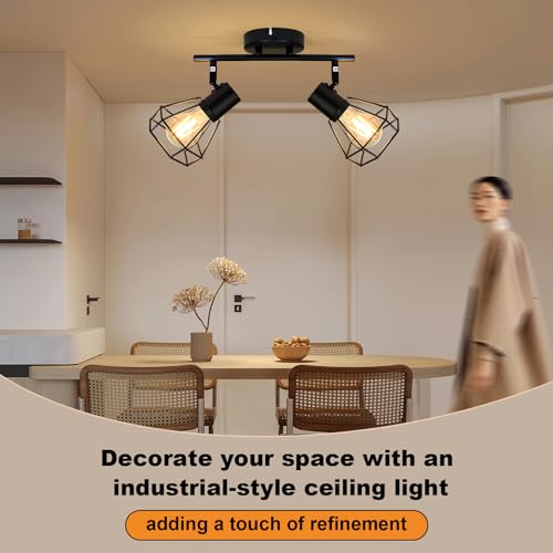?Modern & Industrial?This 2-way ceiling track lighting feature a modern industrial style. The open wire shade, crafted from high-quality iron, not only ensures durability but also introduces a unique industrial charm that complements diverse furniture in your home.