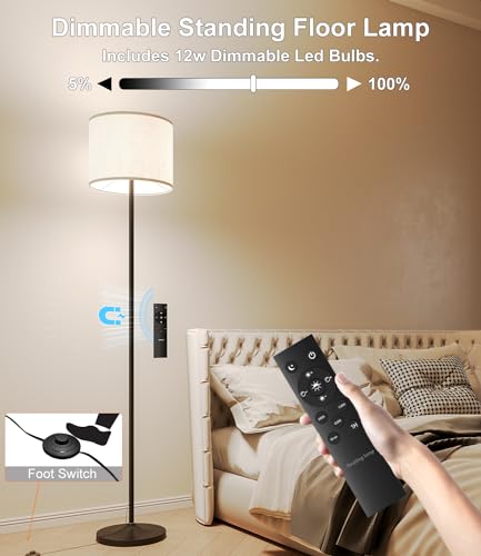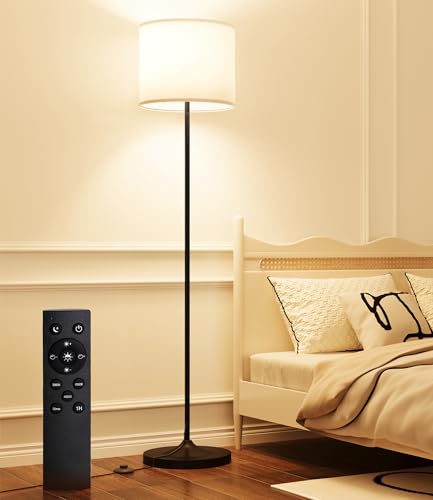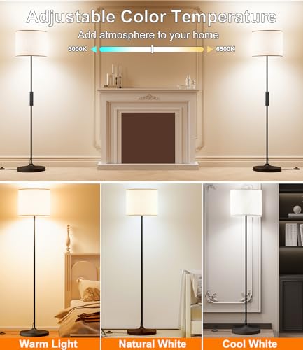 VERSATILE & DIMMABLE LIGHTS: This lamp for living room allow to customize your favorable color temperature by choosing from 10%-100% stepless dimmable brightness and 3 colors temperatures (warm, warm white, white) from 3000K to 6500K. The floor lamp for bedroom has a memory function to remember your last brightness setting when you turn the lamp on. Floor lamp can be set timer to turn off automatically after 30 minutes /1 hour