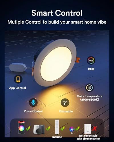 Share the device & Memory Function: You can share the device with your family, and family members can all control the smart led recessed lighting together and enjoy the smart fun. With memory, the function will stay at the last setting you choose while turned on again, no need to reset it