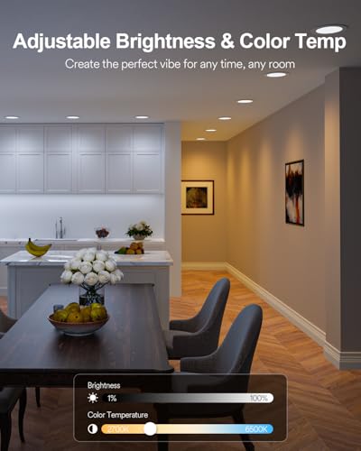 Endless Lighting Possibilities: Lumary 6 inch smart WiFi recessed lights offer 16 million colors and 1%-100 % dimmable brightness. Set the perfect mood with tunable white (2700 K- 6500 K), from warm white to daylight. Ideal for reading, relaxing, or party vibes
