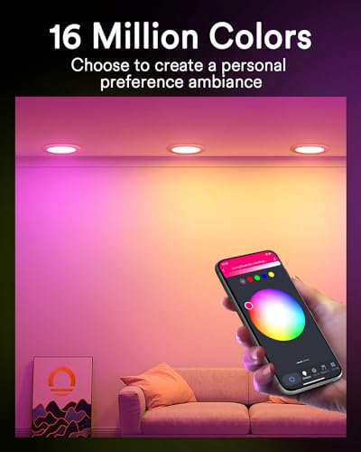 Endless Lighting Possibilities: Lumary 6 inch smart WiFi recessed lights offer 16 million colors and 1%-100 % dimmable brightness. Set the perfect mood with tunable white (2700 K- 6500 K), from warm white to daylight. Ideal for reading, relaxing, or party vibes