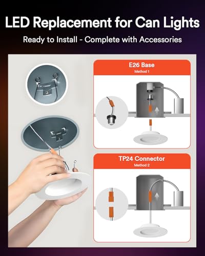 Easy Installation: Quickly install Lumary 6-inch LED Retrofit Downlights into existing cans. Snap the Spring into the Clip. Screw in 5/6'' can socket and use the spring clips to mount our LED can replacement light fixtures to the ceiling. Suitable for wet locations. Experience bright light in your kitchen, living room, bedroom, bathroom, and common areas of your home or office