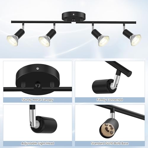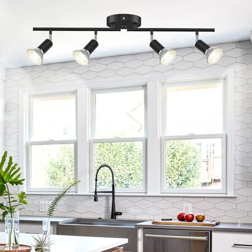 LURNOFY 4 Light Kitchen Track Lighting, Flexible Black Track Lighting Fixture Ceiling, Track Light Ceiling with GU10 Base for Kitchen, Corridor, Exhibition Hall (Bulbs Not Included)