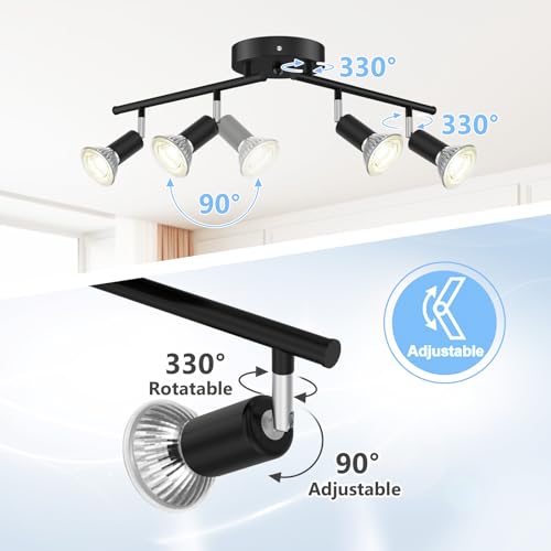 Flexible And Adjustable Head: Track Lighting Is Widely Used In Kitchen Track Lighting Fixtures Ceilings, And The Rotatable Head Features A 330° Horizontal And 90° Vertical Rotation, Making It Easy To Illuminate At Multiple Angles. The Fixed Design Of The Center Head Ensures Precise Light Projection, And The Extended Lamp Cup Effectively Reduces Direct Light, Reduces Eye Fatigue, And Provides A Bright And Comfortable Lighting Experience