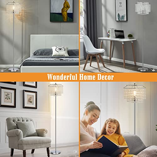 ?Standing Lamp with Crystal Lampshade for Bedroom? this Crystal amount is 660pcs in total, this floor lamp for living room is made of high-quality metal with beautiful crystal lampshade through lots of processes polished and refined. The unique double layer crystal shade design provides more elegance & modernity than those single one, you're free from the glare of overheads or exposed bulbs.