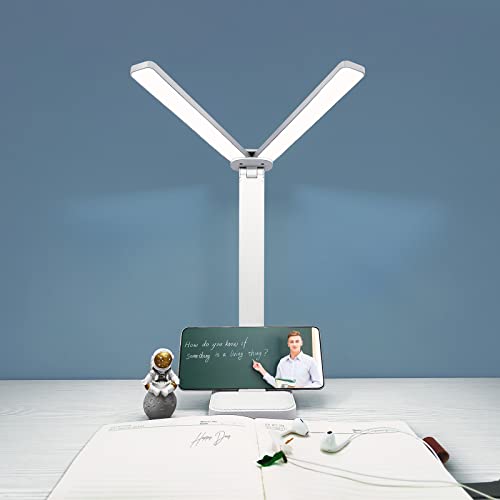 ?Dual Head Modern Design?The table lamp adopts a double-head design.The left and right head can be unfolded into a straight line, with the 160-degree swing angle in up and down direction, providing you with a larger lighting coverage and angle. Foldable design makes it effectively reduce writing shadows.