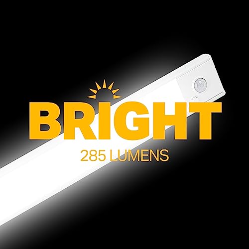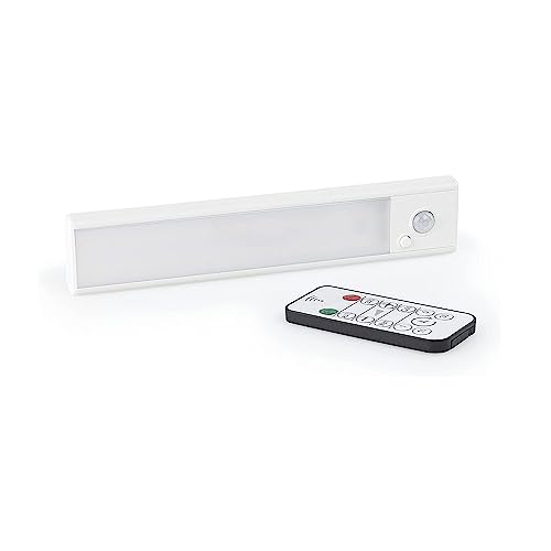 Rechargeable Motion Sensor Light: Equipped with a rechargeable battery and remote, this sleek under cabinet light is 300 lumens and offers up to 11.5 hours of bright illumination