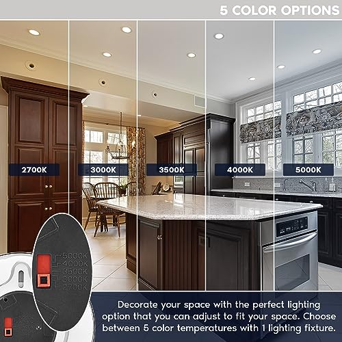 RELIABLE LIGHTING - Zero flickering light, zero delay, and zero worries with 4 inch LED recessed lights that provides quality indoor and outdoor lighting with a 5 cct color adjustable switch for temperature selectable recessed lighting and magnetic trim for easy trim changes. Every light has 2 install options, is Energy Star and wet rated for reliability, UL listed for safety, has a slim round white trim, 115 degree flood light, and backed by a 5 YEAR WARRANTY.