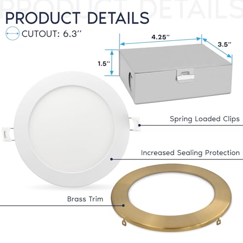 SLIM CANLESS DESIGN - Built with an easy to handle and light design that only needs 2 inches of clearance space to fit into narrow ceilings. Each low profile LED ceiling light is the perfect solution that comes with a j box for easy wiring, spring loaded clips and modern trim for a flush to ceiling finish, and does not require any can housing.
