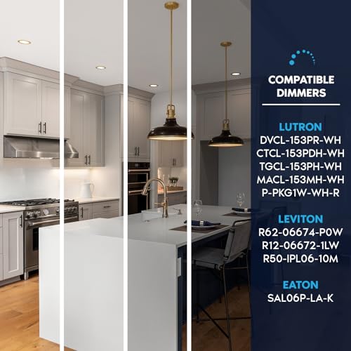 DIMMABLE - Control the brightness of your 6in LED retrofit kit with it's smooth dimming feature that can be reduced from 100% to 10% lighting output. Be in control of your recess lights that will dim down to your preferred setting without flickering or issues, so you can enjoy a pleasant atmosphere every time. With an IC insulation safe and wet rating, these brass LED recessed lights are ideal for new and old construction, remodels, soffits, eaves, showers, and any indoor / outdoor location.